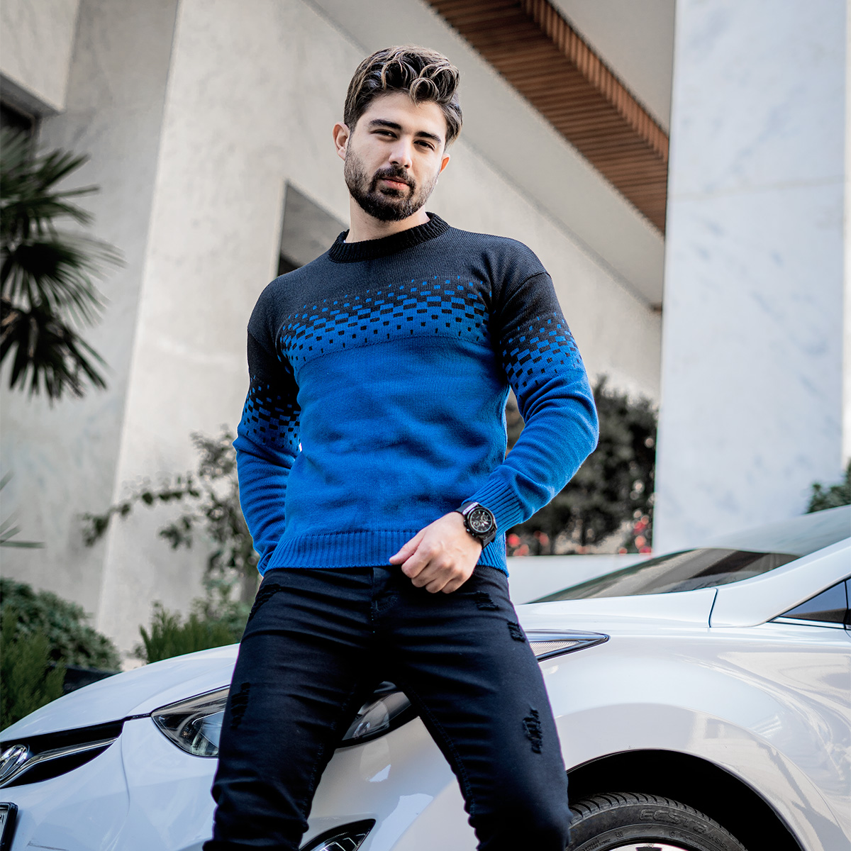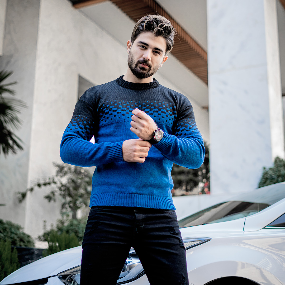 پلیور مردانه دو رنگ آبی مشکی مدلShatel