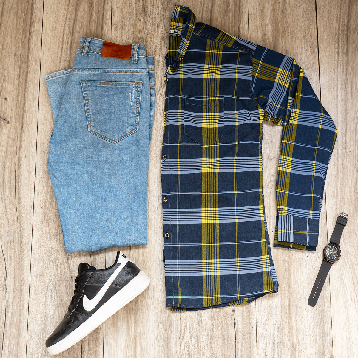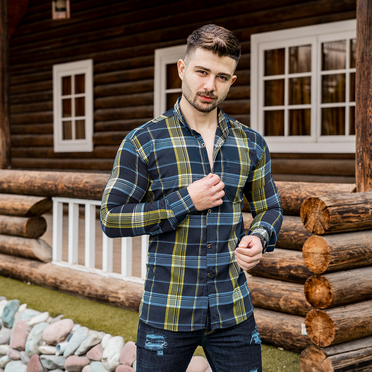 پیراهن راه راه مردانه زرد آبی مدلwigo