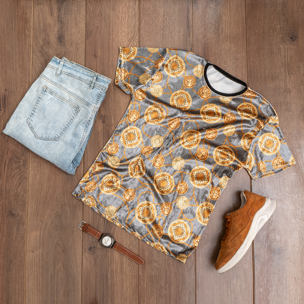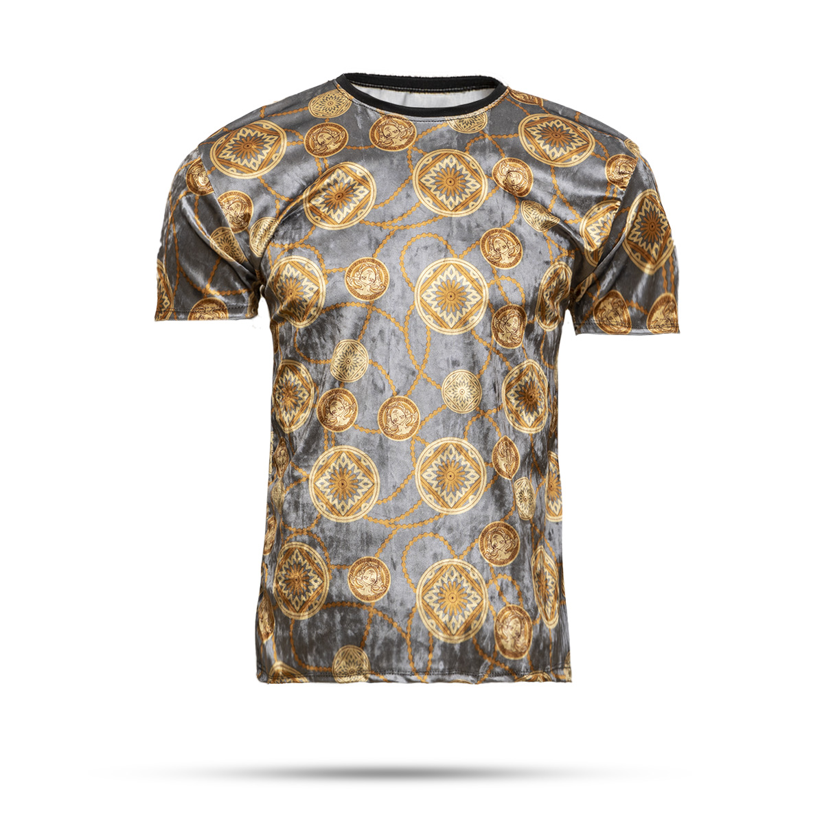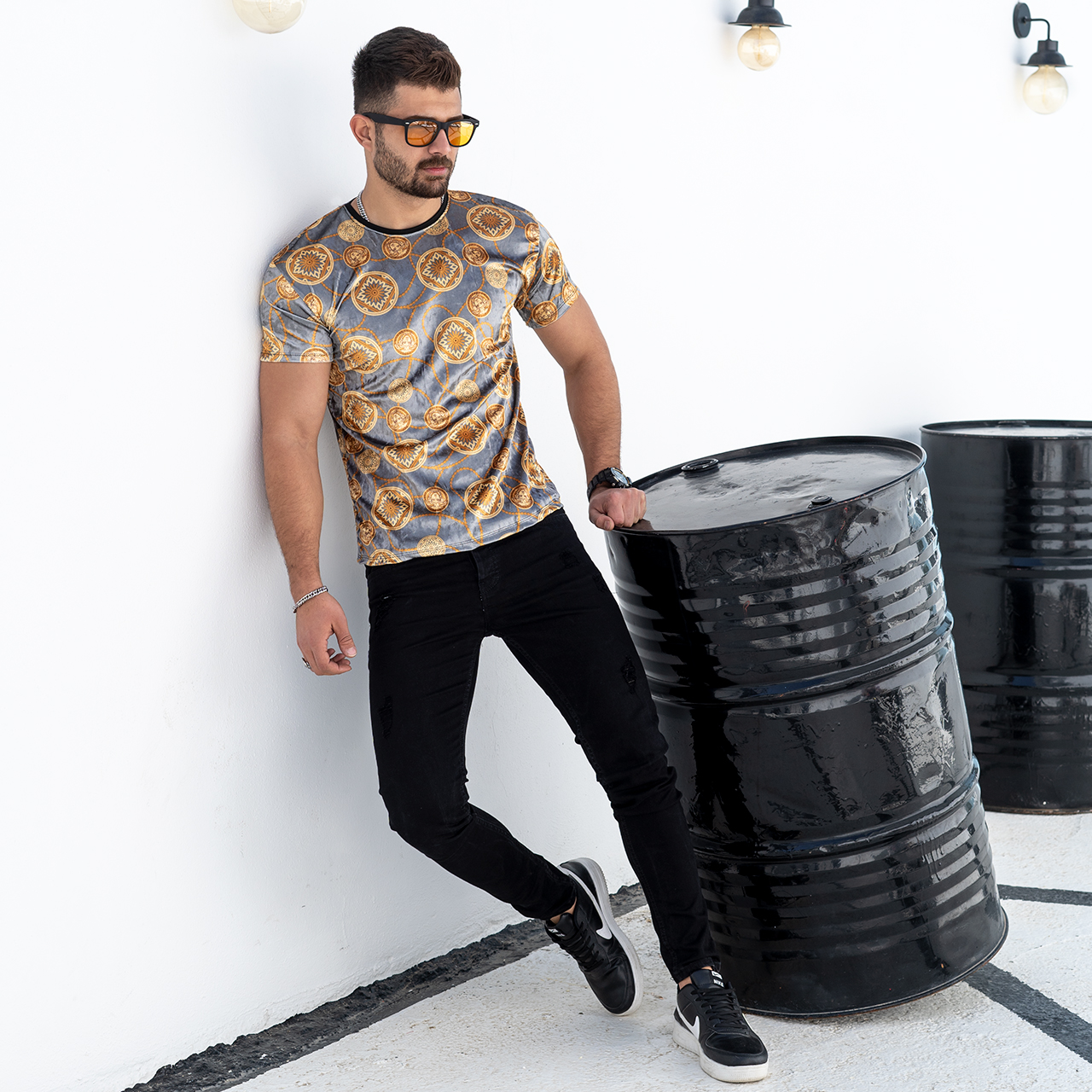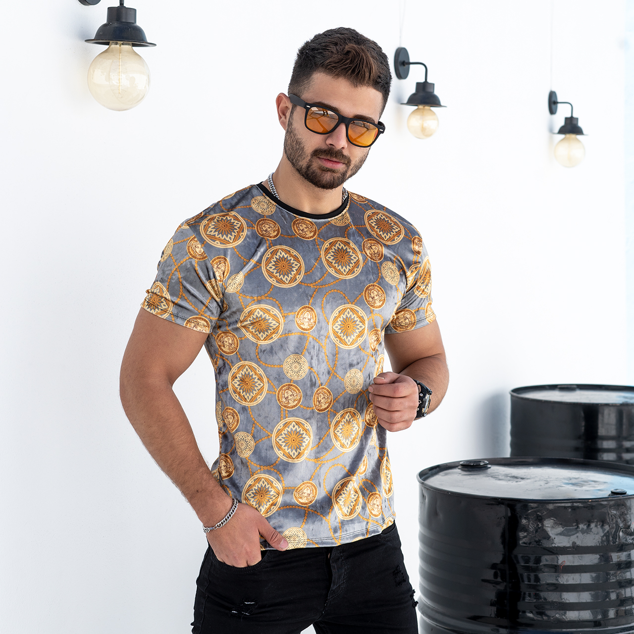 تیشرت مخمل طوسی طلایی مردانه مدل golden