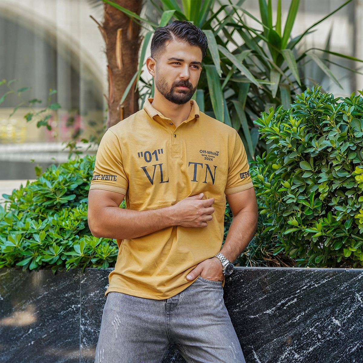 تیشرت مردانه خردلی مدل 01-LV