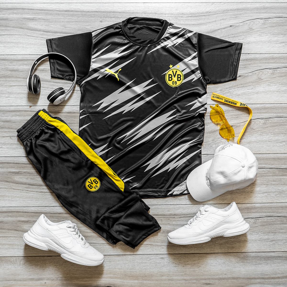 علاقه‌مندان باشگاه‌ها و تیم‌های مختلف ورزشی تمایل دارند پوشاکی با طرح و لوگوی همان باشگاه را بپوشند. از طرفی پوشیدن تیشرت به تنهایی یا شلوار به تنهایی، چندان مورد رضایت نیست؛ به همین دلیل این ست به صورت تیشرت و شلوار ارائه شده و طرح و لوگوی تیم فوتبال محبوب دورتموند را در خود دارد.