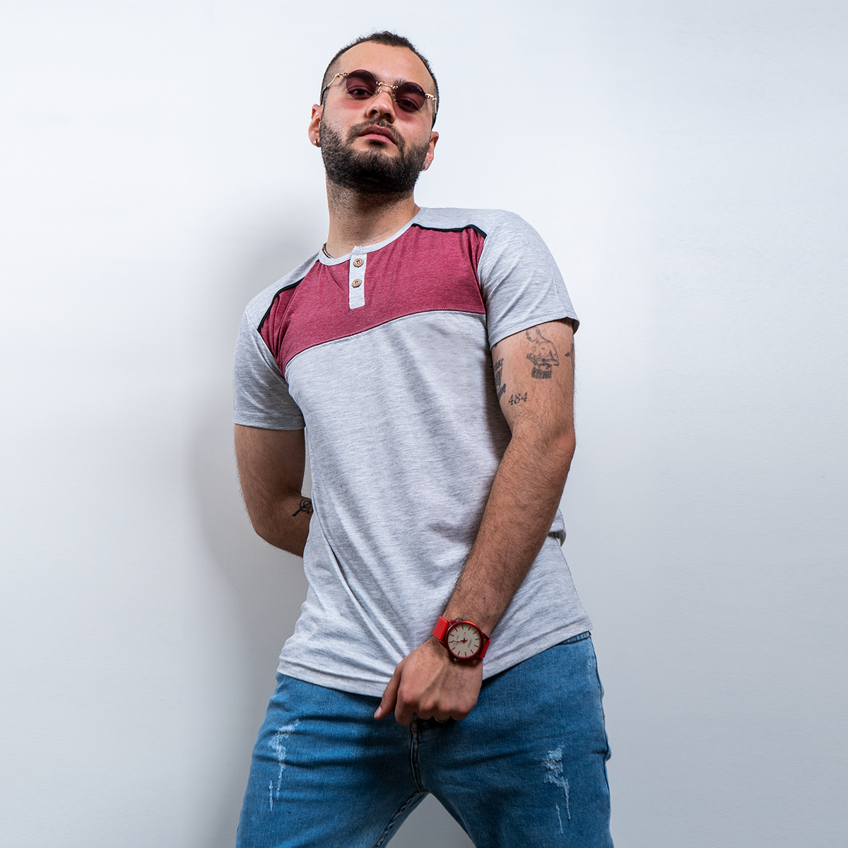 تيشرت مردانه طوسی روشن زرشکی مدل Ratim