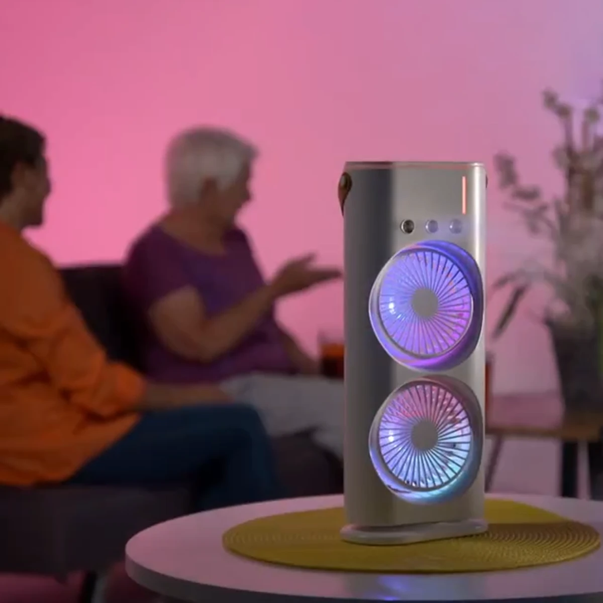 فن دو سر چند منظوره با قابلیت تنظیم سه سرعت باد و چراغ شب رنگی گرم، ایدهآل برای استفاده در هر فضا. جهت باد قابل تنظیم و طراحی زیبا. هماکنون خرید کنید و از خنکی لذت ببرید.